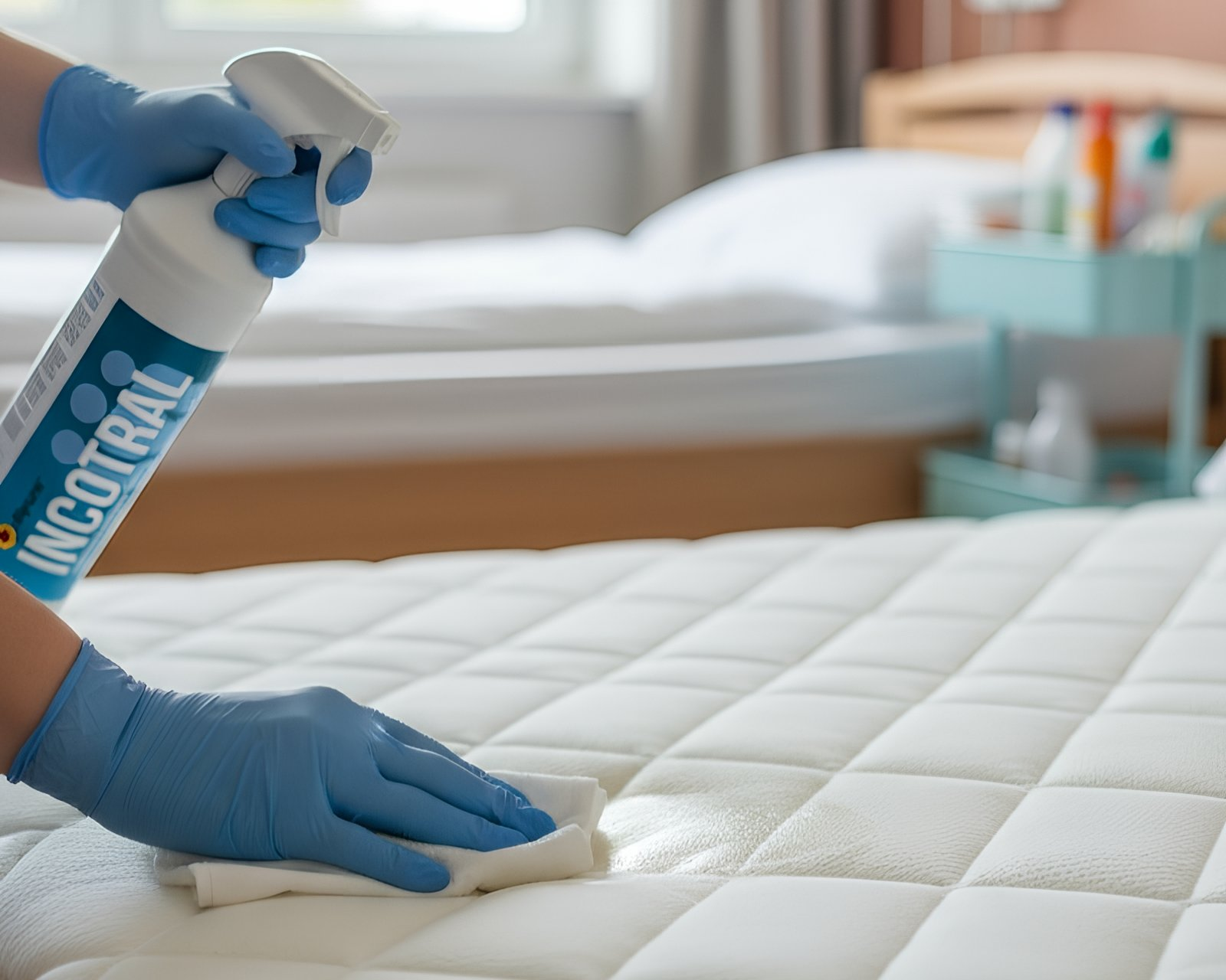 In Pflegeheimen, Krankenhäusern oder der häuslichen Pflege sind organische Verschmutzungen wie Urin, Stuhl oder Erbrochenes keine Seltenheit. Gelangt beispielsweise Urin auf Pflege‑Matratzen oder Polster, entwickelt sich ohne gründliche Reinigung schnell ein penetranter Geruch, der schwer zu entfernen ist. Incotral von dipure® wurde genau für solche Situationen entwickelt: Incotral ist ein spezialisiertes Reinigungskonzentrat, das organische Rückstände zersetzt und unangenehme Gerüche nachhaltig beseitigt, anstatt sie zu überdecken.