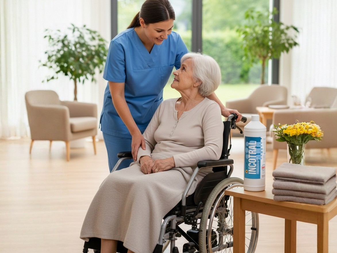 - Speziell für organische Verschmutzungen: Incotral entfernt kraftvoll Schmutz aus Urin, Kot und Erbrochenem – typische Verschmutzungen in Pflege‑ und Therapiebereichen. Damit ist es ideal für Pflegebetten, Matratzen, Rollstühle, Polstermöbel und andere geruchsaufnehmende Oberflächen.